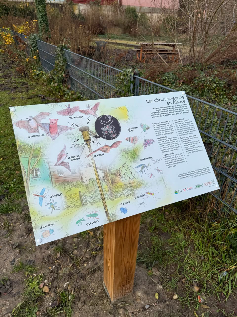 J’ai eu le plaisir de concevoir le graphisme d’un panneau pédagogique réalisé avec une classe de CM1–CM2 de Mothern, pour sensibiliser le public au rôle essentiel des chauves-souris. Mon travail a consisté à traduire des contenus pédagogiques et scientifiques en un support visuel clair, accessible et attractif, pensé pour tous les publics et d'accompagner les enfants dans le dessin des éléments constitutifs de ce panneau. Ce projet s’inscrit dans un chouette partenariat avec la Maison de la Nature du Delta de la Sauer et d'Alsace du Nord, développé depuis quelques années maintenant sur différents sites et autour de multiples thématiques, mêlant graphisme, éducation et sensibilisation environnementale. Je les remercie pour leur confiance et ces beaux projets qui s'annoncent encore riches et nombreux en 2026
